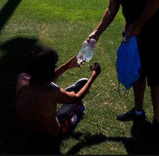 Заедно одевме до топлинската лабораторија, која наликуваше на соблекувална. Додека одевме внатре, видов фотографија од Стрингер на ѕидот, заедно со фудбалска топка што ја потпишал ден пред да колабира. На таблата, видов упатства: ако нечија телесна температура достигне 40 степени, намалете го интензитетот на тренингот; ако температурата продолжи да се качува, веднаш започнете со „протокол за рехидратација“.